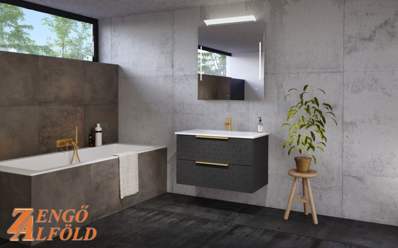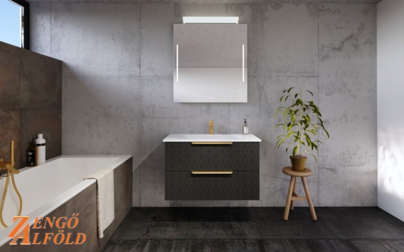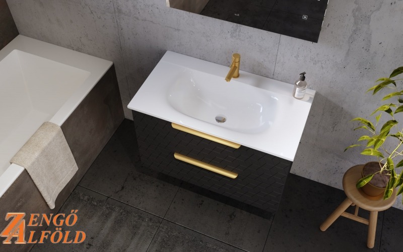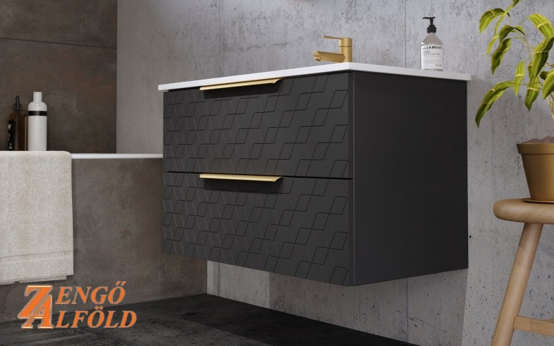 Letisztult formák, geometrikus minták és arany részletek – ez a fürdőszobaszekrény a modern minimalizmus tökéletes megtestesítője.